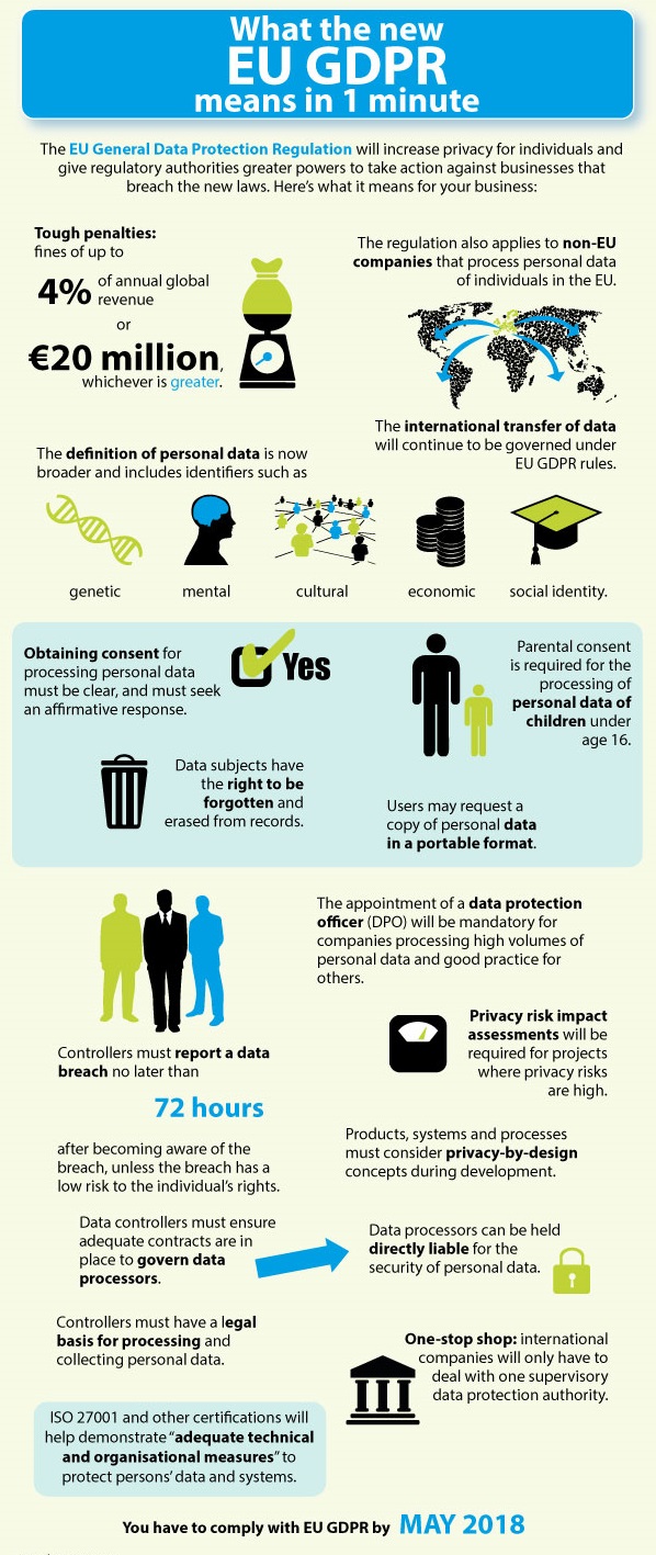 同時,為GDPR做好準備的主要活動包括:資料安全性、信息的審計、隱私權聲明、記錄的保存、個人資料的交換及員工培訓等。